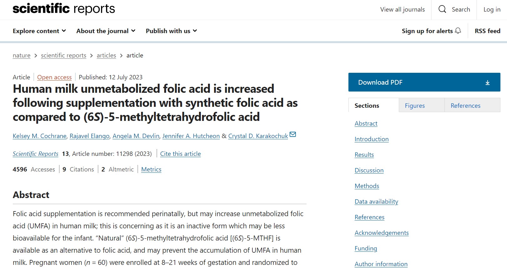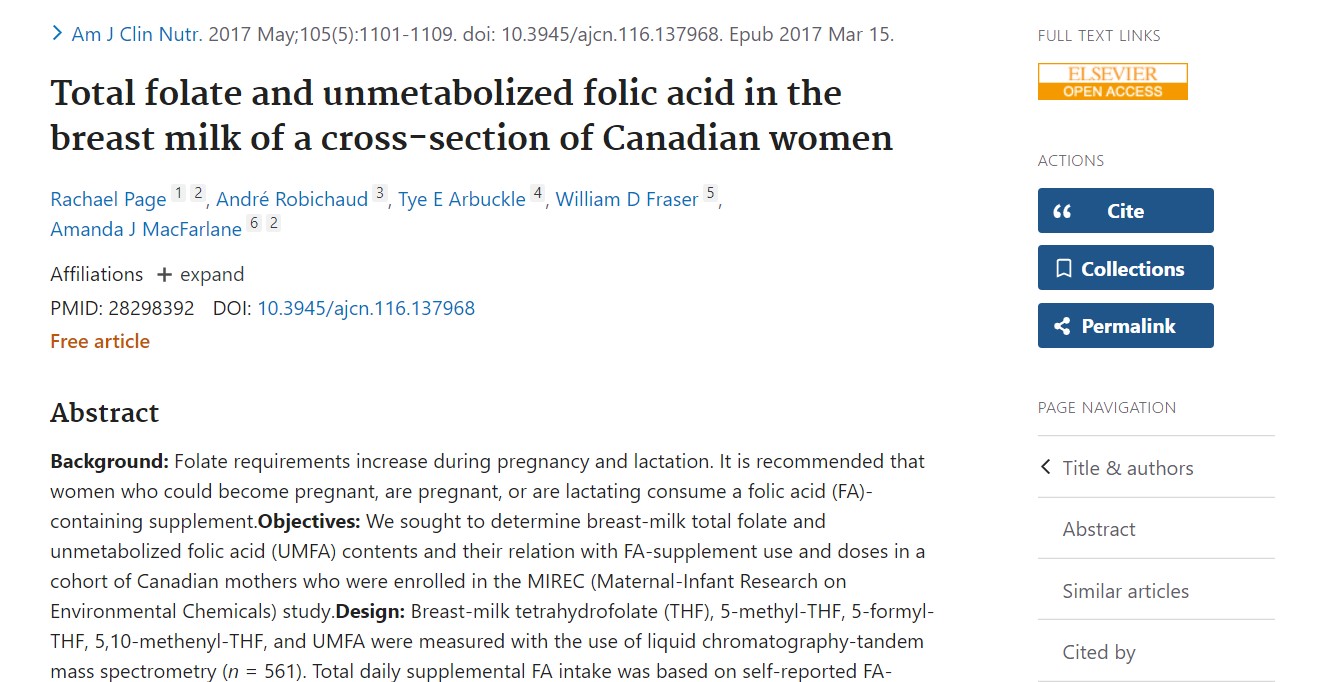 Page R et al. Total folate and unmetabolized folic acid in breast milk of Canadian women. Am J Clin Nutr 2017;105:1101-9.