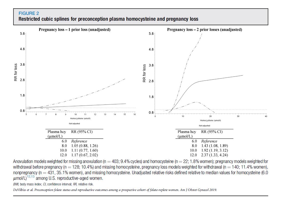 · A clear dose-dependent relationship with homocysteine (Hcy): among women with two prior losses, each 2 µmol/L increase in Hcy (e.g., from 6 µmol/L to 8 µmol/L) was associated with a 43% increase in miscarriage risk.