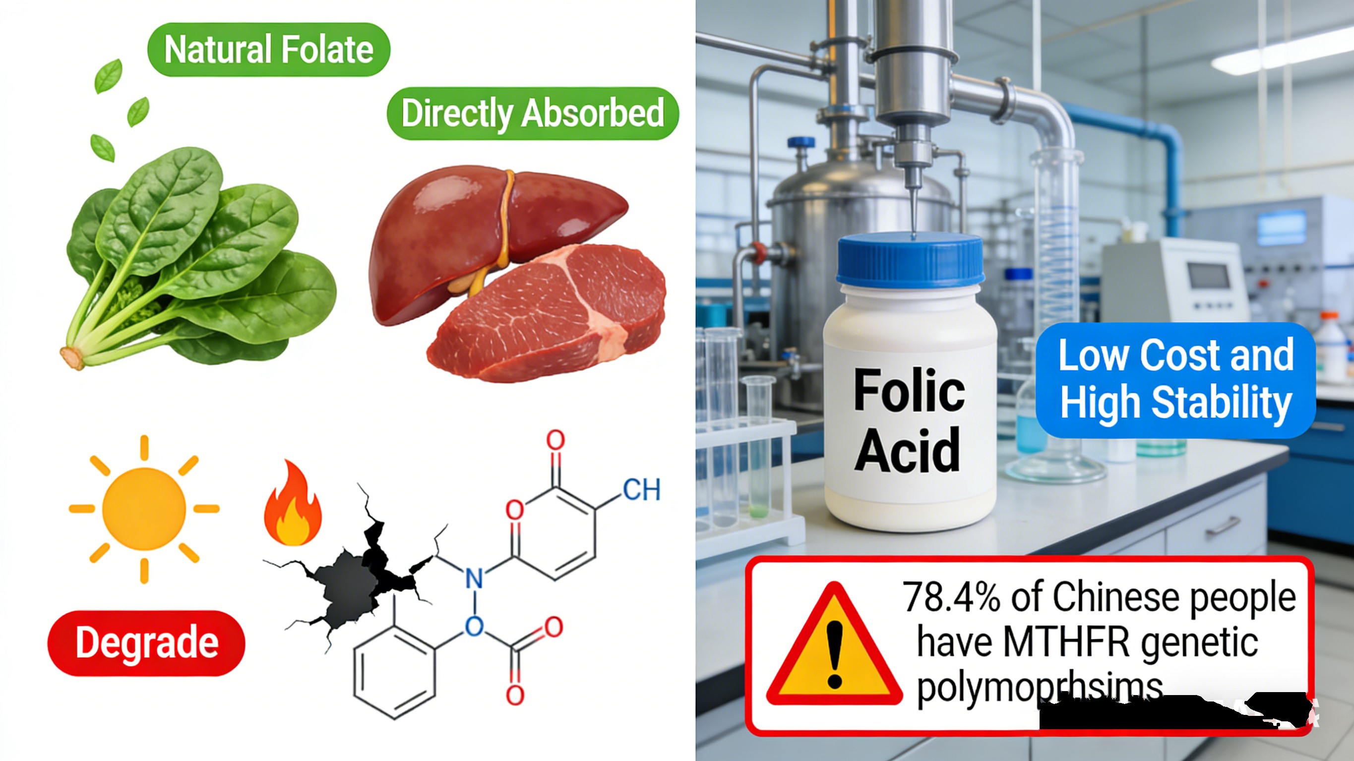 Bottom line: Folic acid solved mass production but fails to match the genetic profile of Chinese populations, carrying hidden risks beneath its low cost.