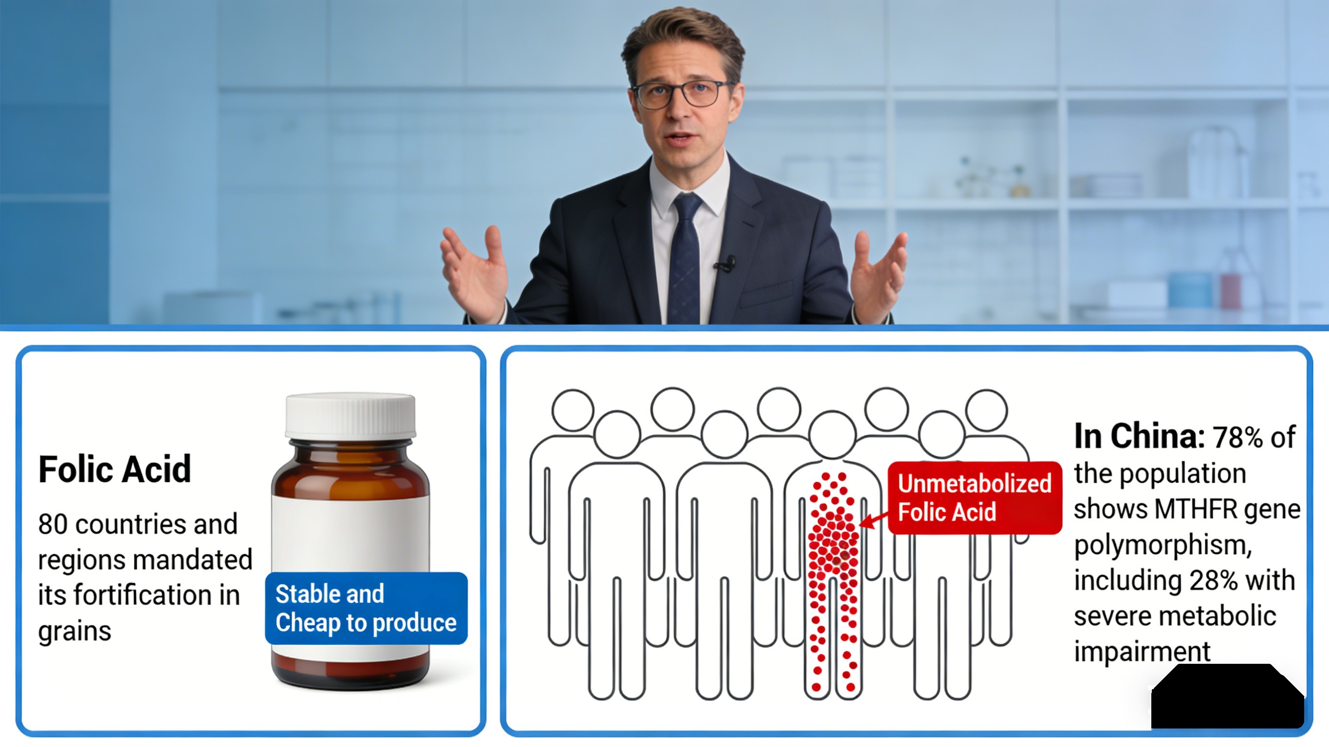In practical terms, nearly 30% of Chinese people cannot efficiently convert folic acid, leading to ineffective supplementation and potential buildup of Unmetabolized Folic Acid, which may mask vitamin B12 deficiency and interfere with zinc absorption. For companies, this translates into consumer complaints and reputational risk.